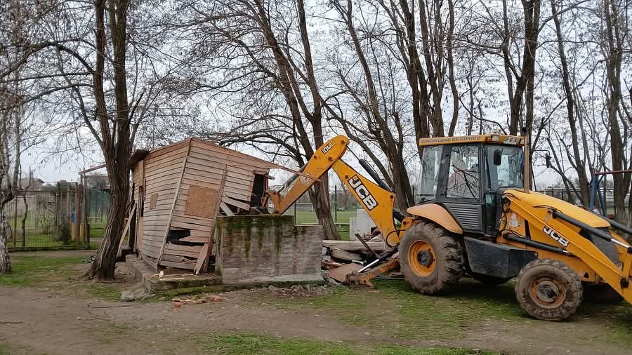 Este lunes 14 de julio, se concretó el desarme de una mediagua ubicada en el complejo deportivo del sector Aguas Negras, a un costado del recinto deportivo La Toma.