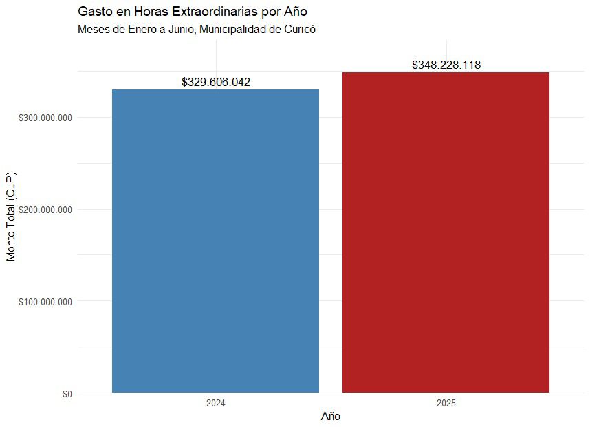 Los números hablan, aunque parezcan chistes caros. Entre enero y junio de 2024, bajo la administración del exalcalde Javier Muñoz, los gastos en horas extras llegaron a $329.606.042. Pero en el mismo periodo de 2025, con nueva administración, la cifra subió a $348.228.118.