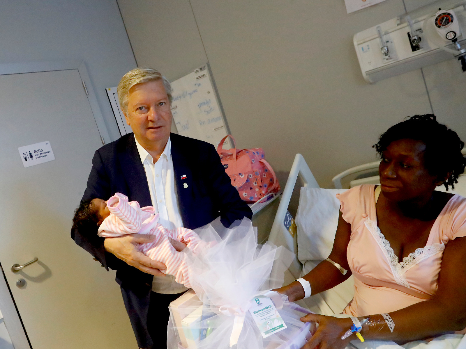 Se trata de Jael Sophi Saúl Clocy de padres haitianos quien llegó al mundo a las 02:01 horas y quien recibió regalos y el cariño del alcalde George Bordachar.