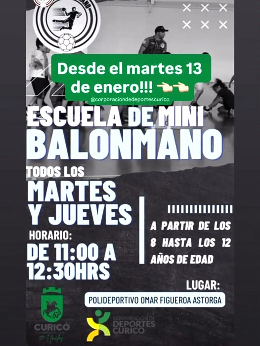 La Corporación de Deportes de Curicó anunció el inicio de la Escuela de Mini Balonmano, una iniciativa orientada a niñas y niños de entre 8 y 12 años que busca fomentar la actividad física, el aprendizaje deportivo y la recreación desde temprana edad.