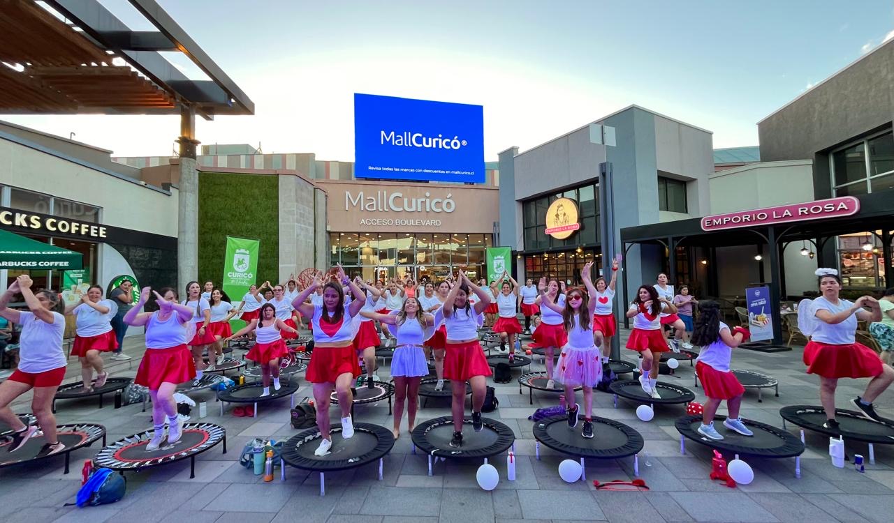 Durante una reciente jornada, la Corporación de Deportes de Curicó realizó con gran convocatoria la clase temática “Jump Cupido”, en el Espacio Boulevard del Mall Curicó, instancia que reunió a beneficiarias del taller en una entretenida y motivadora actividad de recreación y vida activa.